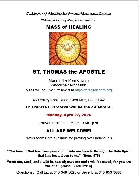 Location: Saint Thomas the Apostle Church, 430 Valleybrook Road, Glen Mills, PA 19342